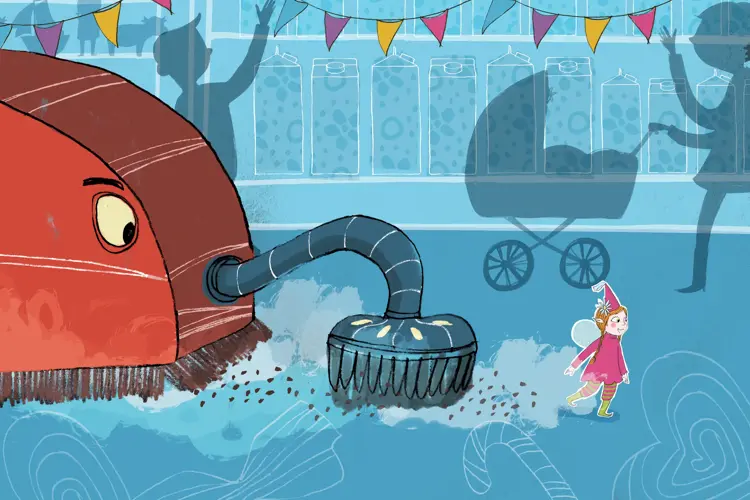 Illustrasjon av Rengjøringsmonsteret som går etter Amfelia