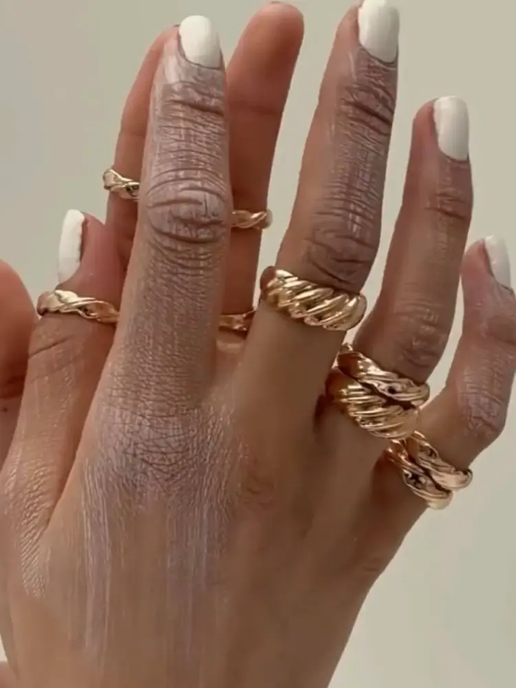 Tips! La hendene være i fokus og bruk ringer på alle fingrene – gjerne flere på samme finger. Her kan du bruke alt fra tynne ringer til store statement-ringer.