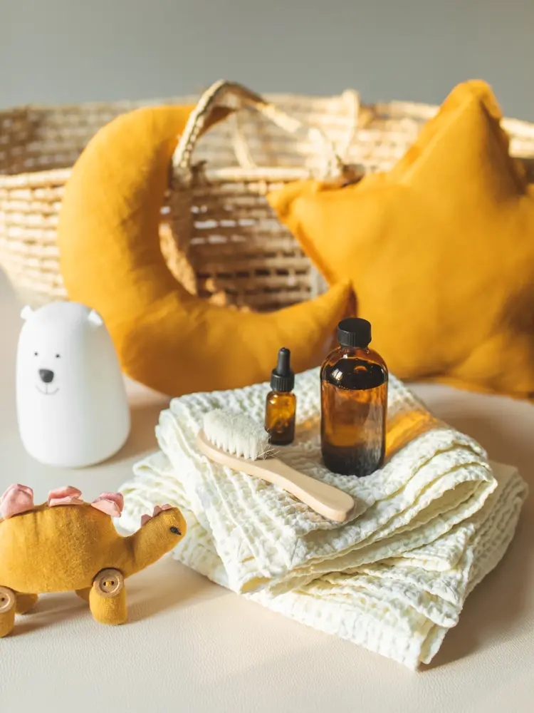 For å sørge for at babyhuden ikke blir tørr og nuppete, er det et must å ha et lager av gode salver og badeoljer som er tilpasset de minste. Gå til innkjøp av en søt liten toalettmappe som du fyller med en god fuktighetskrem, zinksalve, badeolje og en klut som er mild mot huden.
