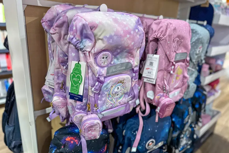 «Beckmann skiller seg ut. Det er norsk design fra Kristiansand, og de har over 75 års erfaring med skolesekker,» sier han. «Sekkene har solide ryggplater og er utstyrt med både bryst- og magebelte. Det gir korrekt støtte og gjør det enklere for barna å bære sekken uten ubehag.»